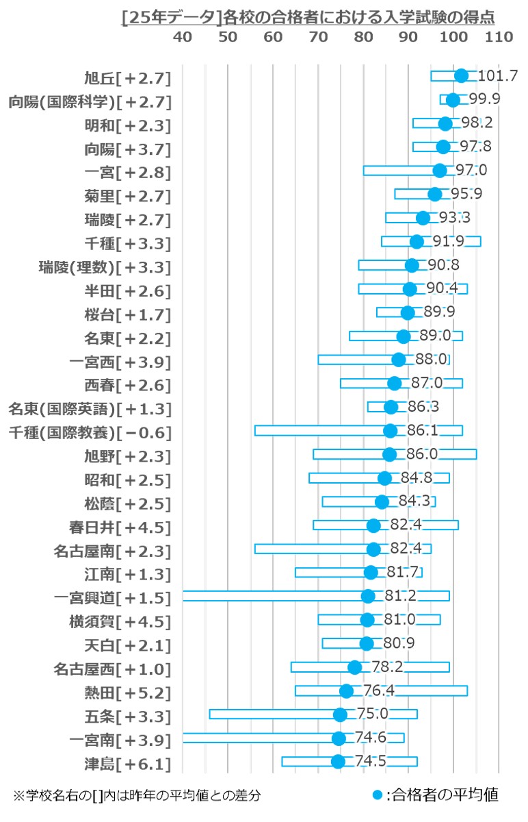 ※学校名右側の[]内は2024年のデータからの差分を示している