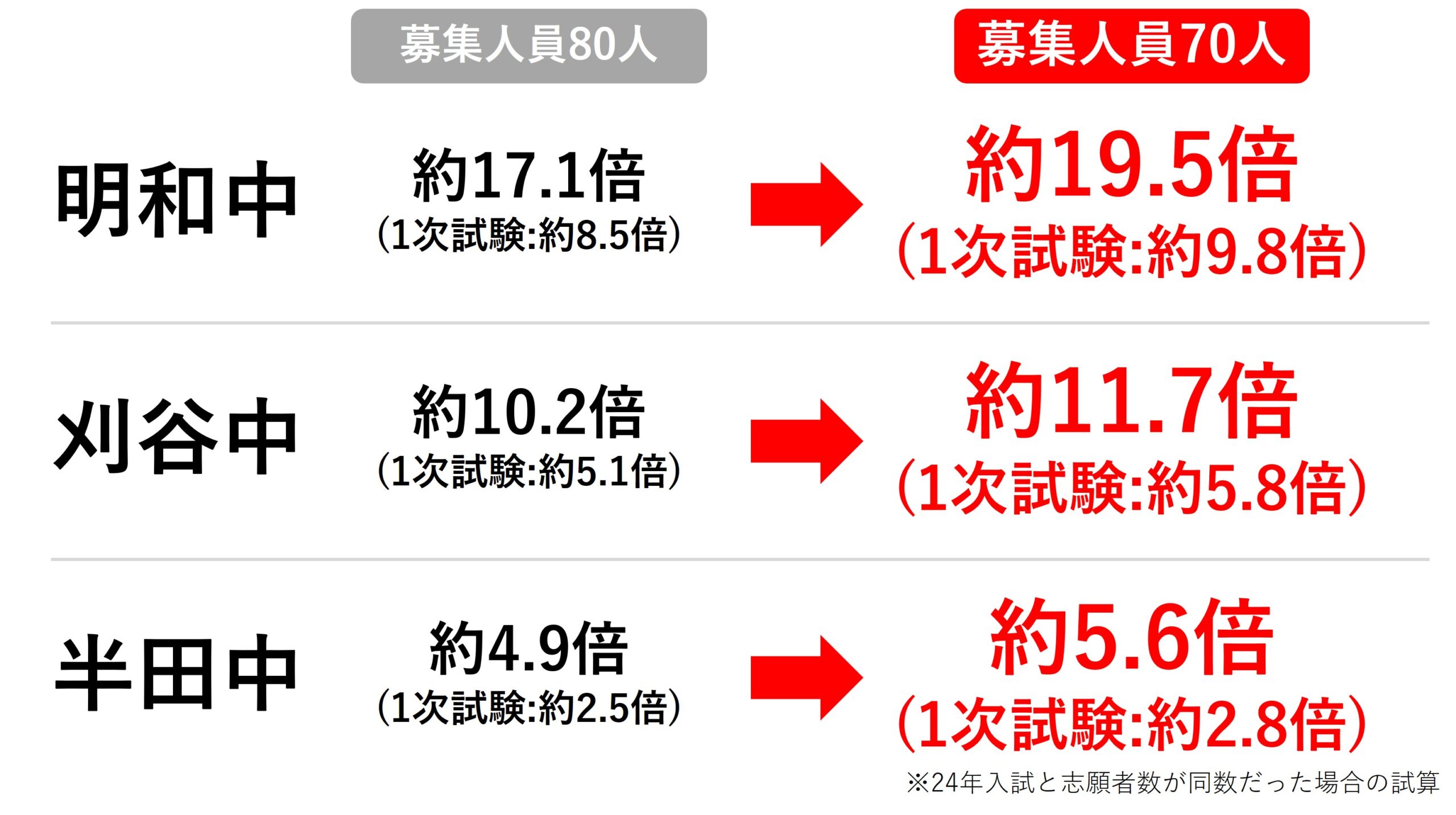 ちょっと具体的な想定は難しいですが、当然偏差値にも影響があり、少なからず難易度は上昇するのではないでしょうか。