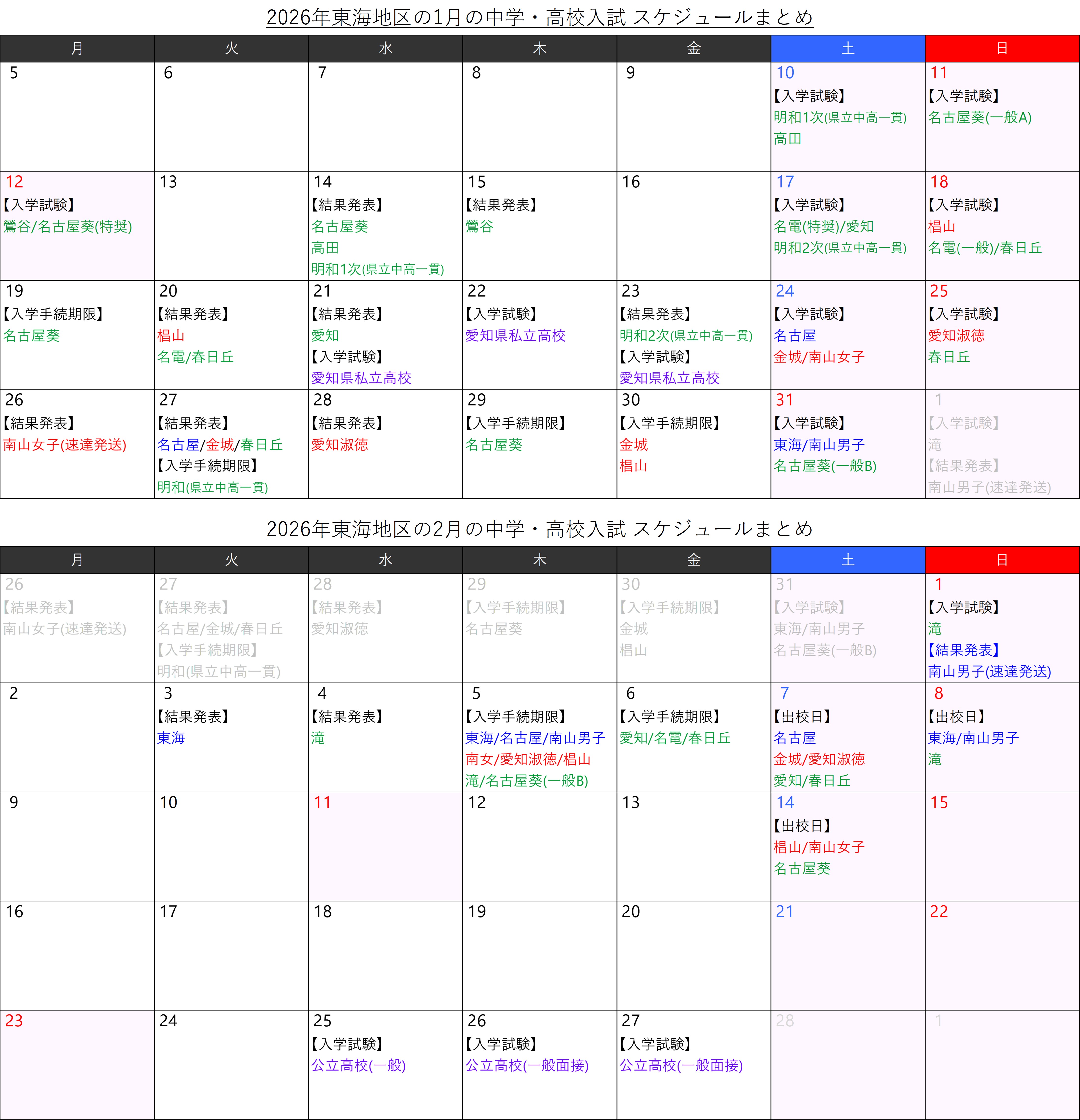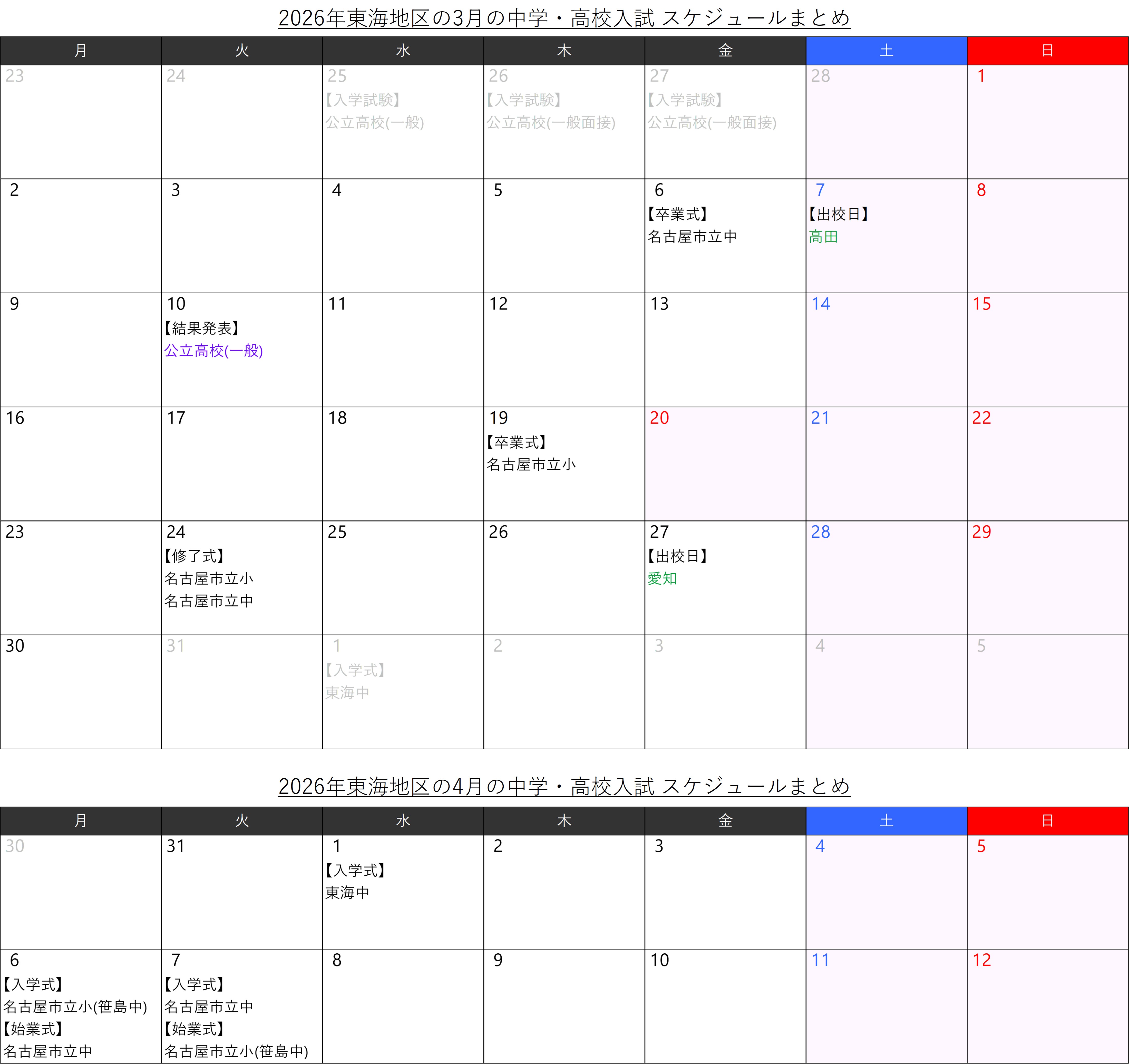 また、名電中は現時点で出校日が不明なので記載していません。