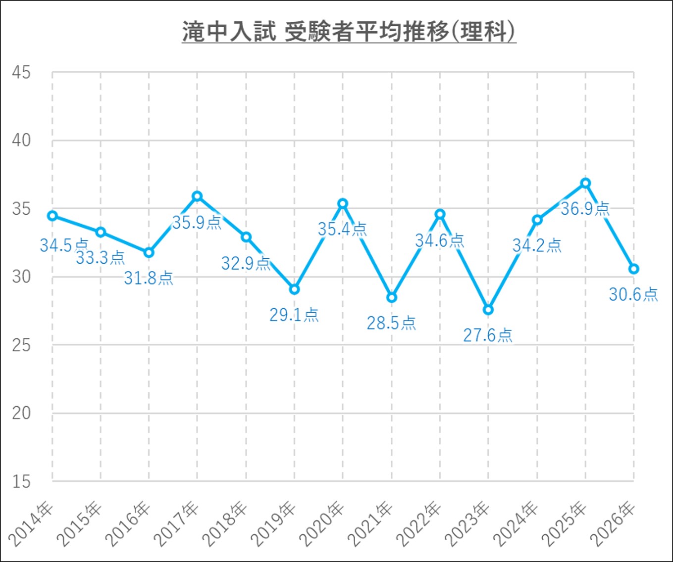 理科は24年-25年で2年連続で易化していまたが今年は大幅に難化しました。