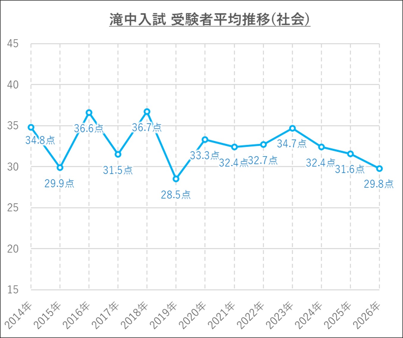 滝中は受験者平均を4教科合計と科目別に出しているのでご紹介します。