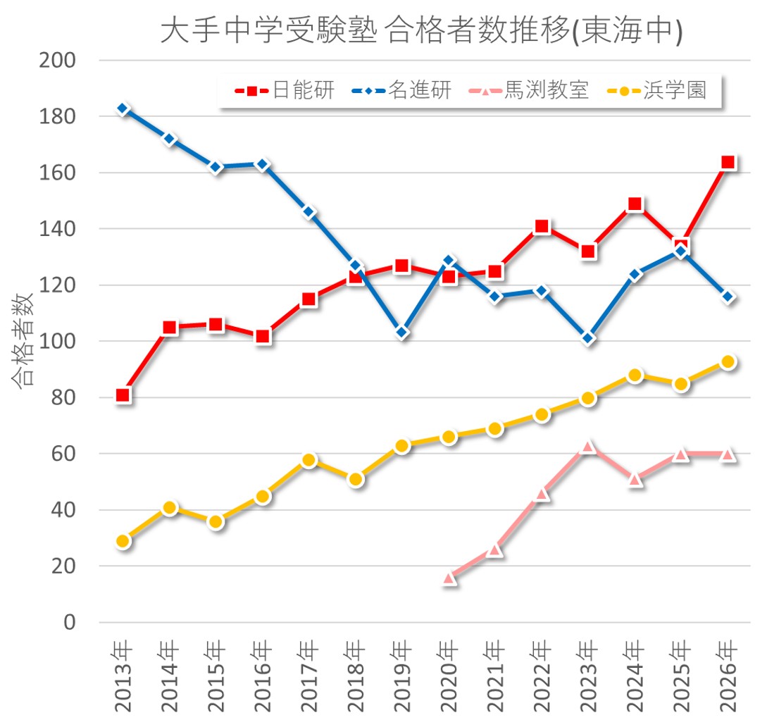 しかし、今年の日能研に関しては、既述の通り名古屋中も東海中も数字をしっかり伸ばしていることから、