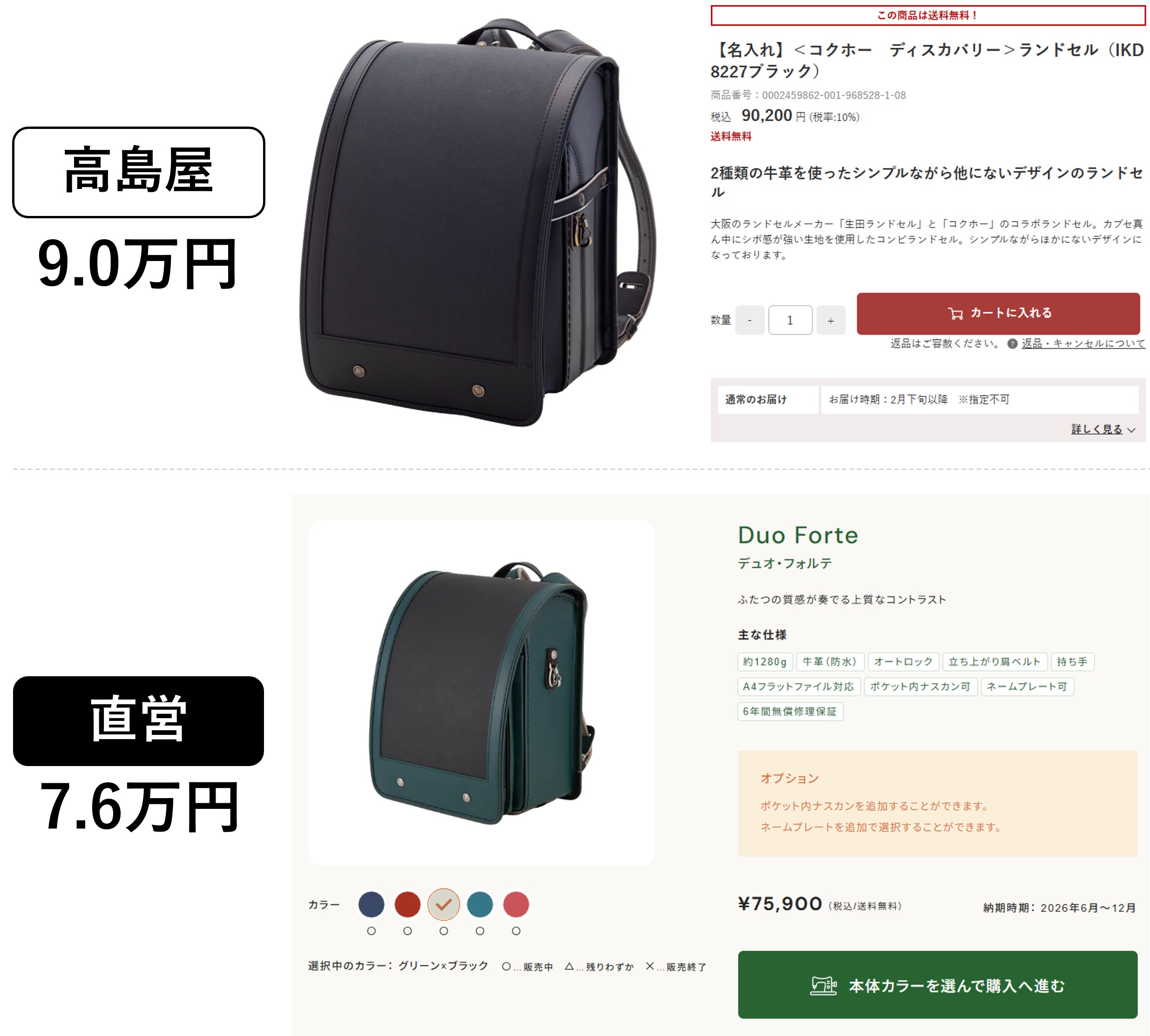 引用元:高島屋オンラインストアおよびランドセル工房生田のホームページより